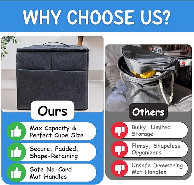 - Looks Better: Say goodbye to those flimsy toy storage bags and take organization to the next level! Our cube storage organizer has reinforced yet soft walls, and fits a standard shelf of 13x13 inches.