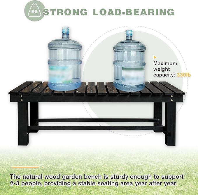 - STURDY CONSTRUCTION: Wooden bench uses solid natural wood. The natural texture is clear and hard. The high-temperature carbonization process reduces the water absorption capacity of the product, making it not easily deformed, corrosion-resistant, environmentally friendly, and resistant to sunlight. The surface is smooth and not easily damaged