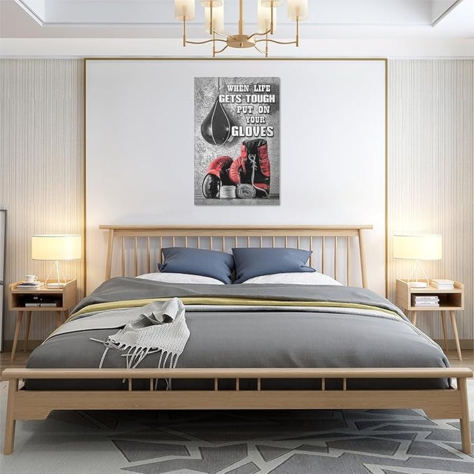 Boxing Posters Wall Art Red Boxing Gloves Pictures Wall Decor Black And White Inspirational Quotes Canvas Prints Painting Artwork Sports Canvas Home Decorations For Teen Boys Room Dorm Bedroom 16"x24"