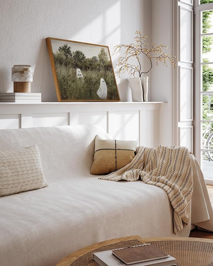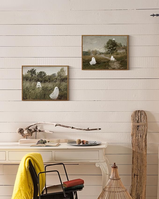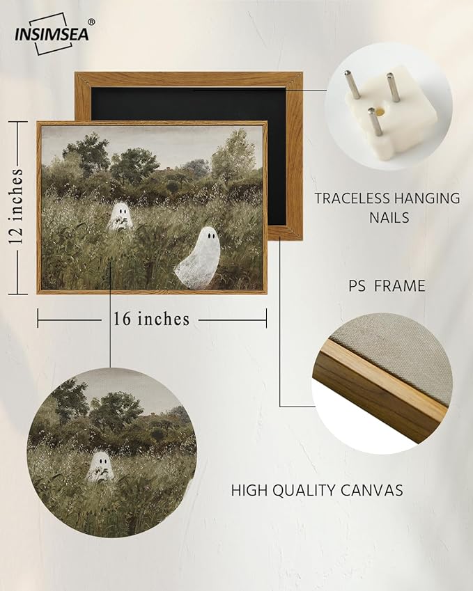 InSimSea Framed Canvas Wall Art, Vintage Halloween Decor With Cute Ghosts, Indoor Bedroom Bathroom Living Room Pictures, Landscape Prints, 12"x16"