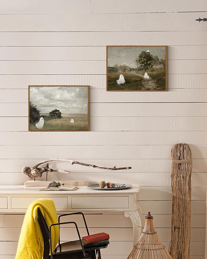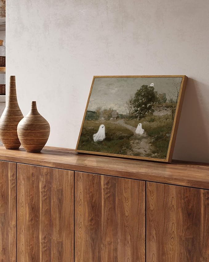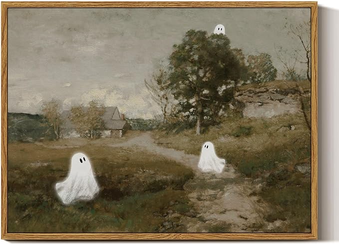InSimSea Framed Canvas Wall Art, Vintage Halloween Decor, Cute Ghosts Decor Indoor, Bedroom Bathroom Living Room Halloween Pictures Decorations, Landscape Wall Art Prints, 12"x16"