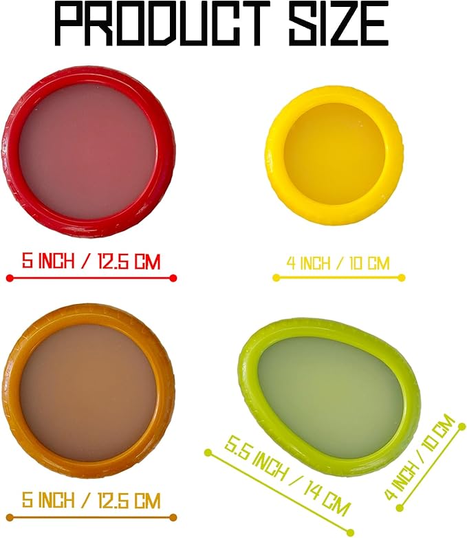 - đ„ăDesigned for Avocados & OnionsăThis set includes 4 sizes tailored for halved avocados, onions, lemons, tomatoes, and other cut fruits or vegetablesâideal for daily kitchen needs and reducing food waste.