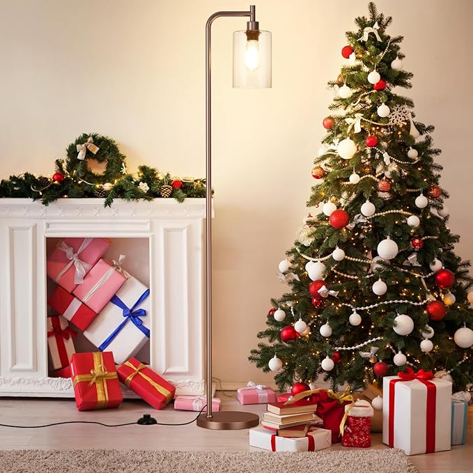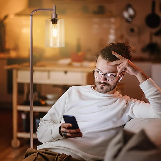 - 【Heavy Base, Safe to Use】- Industrial floor lamp has a highly stable base and light pole and can stand firmly on the floor, which prevents the elderly, children and pets from being overturned. The standing light is equipped with a rust-resistant brown metal body and a sturdy clear glass shade, which makes it look gorgeous and expensive. Based on the moderate weight of pole lamp, you can easily place it anywhere you want.