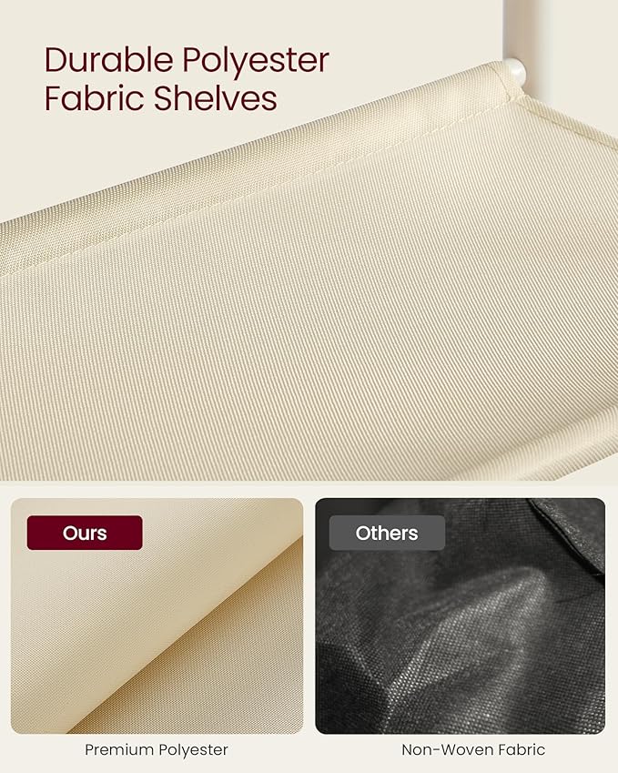 VASAGLE Shoe Rack, 5-Tier Shoe Storage Organizer for Entryway and Closet, Holds 12-16 Pairs of Shoes, 4 Fabric Shelves, Steel Frame, Modern, Natural Beige and Pearl White ULBS036K01