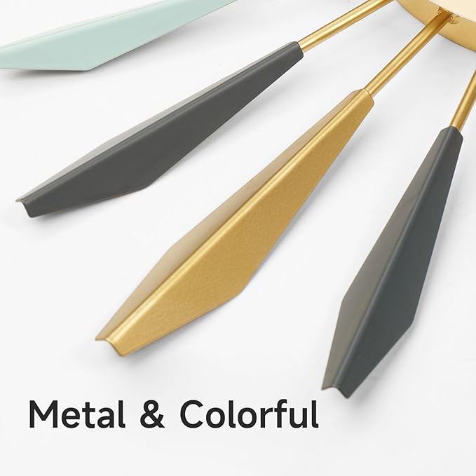 Mid Century Modern Wall Clock, Large Metal Decorative Clock Silent Battery Operated, Colorful Sunburst Starburst 28 Inch Wall Clocks for Living Room Kitchen Bedroom Office