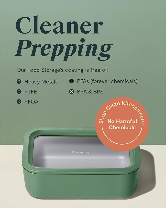- KEEP YOUR FOOD FRESH: Look forward to leftovers with Caraway’s easy-to-store, non-toxic food storage containers. These 6.6 cup glass containers were designed to be displayed and keeps your food fresh & organized.