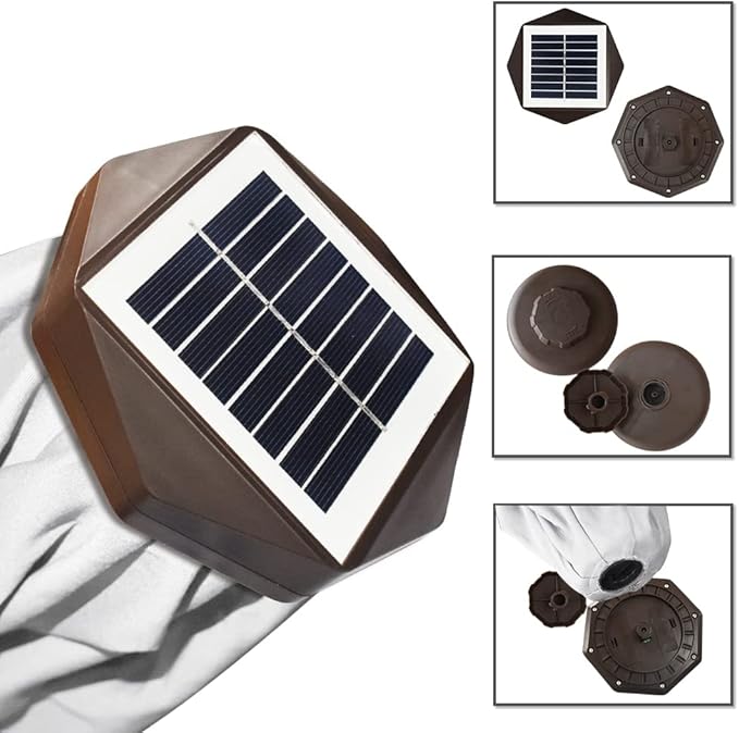 - LED Lighting From the Sun: Dual switched hub light and 80 rib lights, more than most LED lights of patio umbrellas on the market. More rib lights provide a brighter view. Built-in rib lights are not easy to damage and aging. Powered by a solar rechargeable battery.