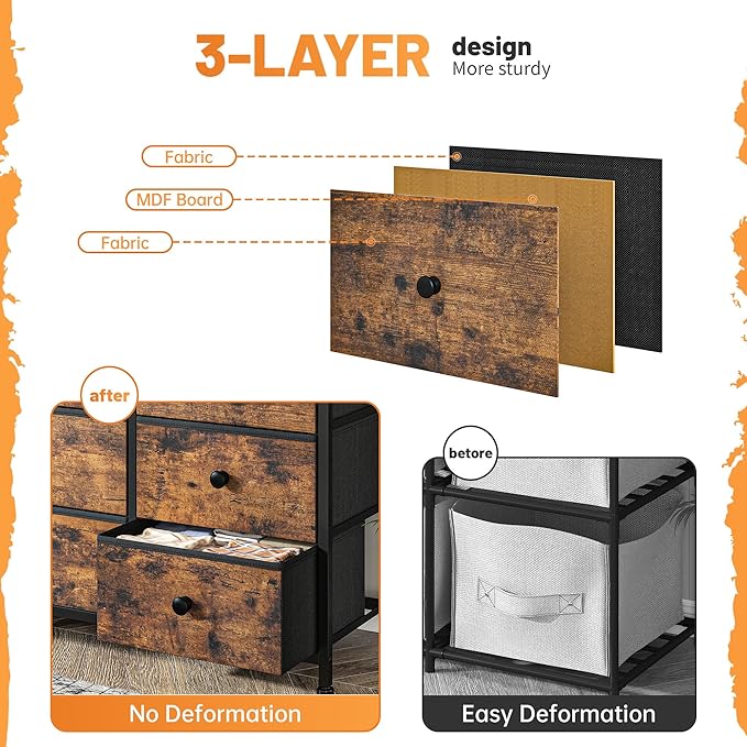 Tv Stand for Bedroom with 13 Fabric Dresser,Entertainment Center for 40,50,55 inch Tv,Dressers & Chests of Drawers for Living Room, Hallway, Entryway, Metal Frame, Rustic Brown