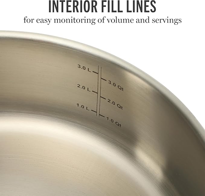 - BUILT TO LAST: 18/8 stainless steel construction promotes durability, elegance, and performance - perfect for everyday sautéing, simmering, searing, and more sans any metallic aftertaste