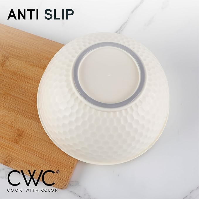 - Plastic mixing bowl set made of BPA free durable polypropylene and food safe material. Top rack dishwasher safe, microwave safe and freezer safe.