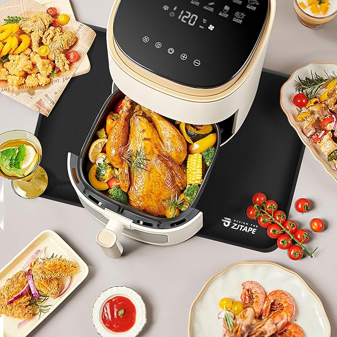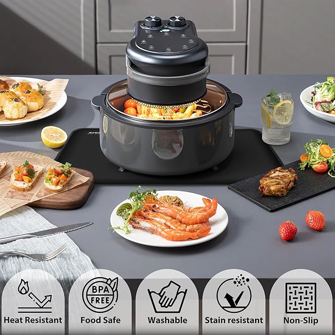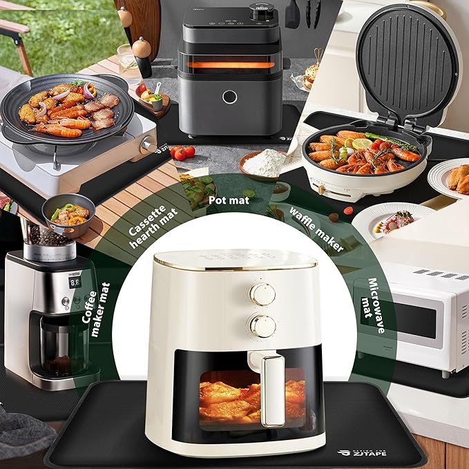 Heat Resistant Mat for Air Fryer Site - 19.6 x 11.8in, Fireproof Silicone Mats for Kitchen Counter, Heat Proof Mat, Non-slip & Waterproof for Deep Fryer, Oven, Coffee machine (Black)