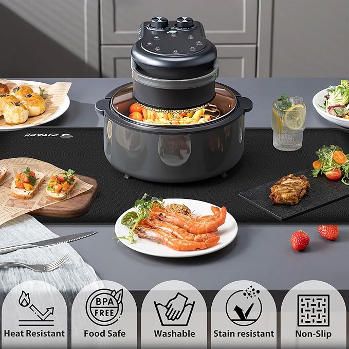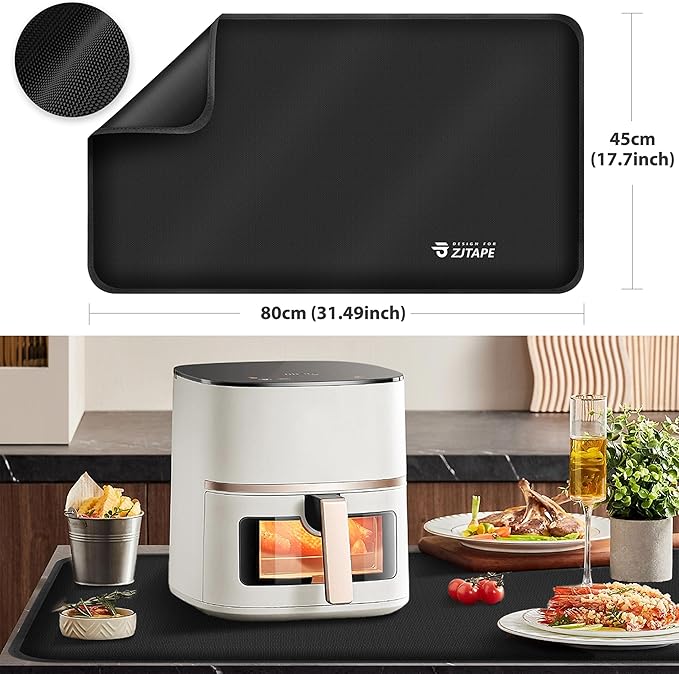 Heat Resistant Mat for Air Fryer Site - 31.5 x 17.7in, Fireproof Silicone Mats for Kitchen Counter, Countertop Protector, Non-slip & Waterproof for Deep Fryer, Oven, Coffee machine (Black)