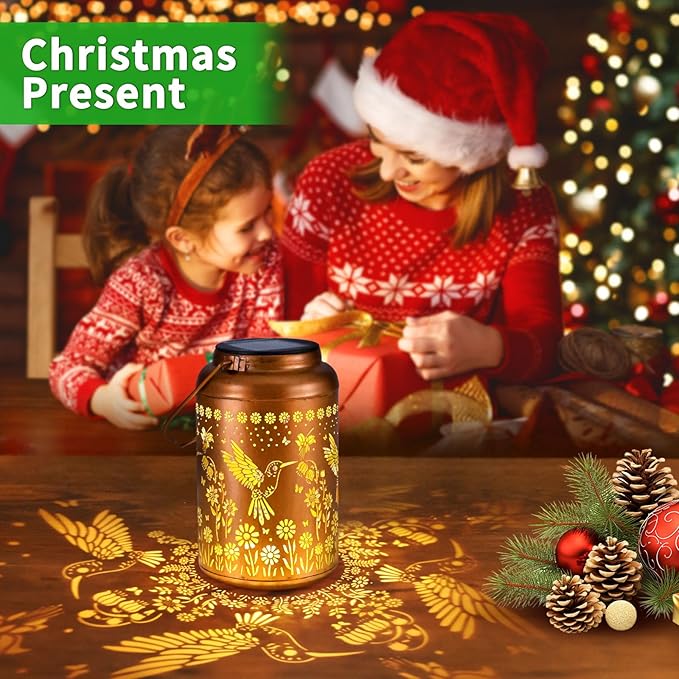- 【Excellent Gift Options】This outdoor solar lantern hummingbird,and the light is projected on the table or ground to create a lifelike beautiful pattern,making your patio stand out.The outdoor lantern is perfect for indoors,backyards,pathways, walkways,patios,and homes,decorate. Makes a great Father's Day, Mother's Day,Thanksgiving,Christmas,Valentine's Day,Birthday,Wedding,New Year and Housewarming,friendship friends women mom grandma gifts.