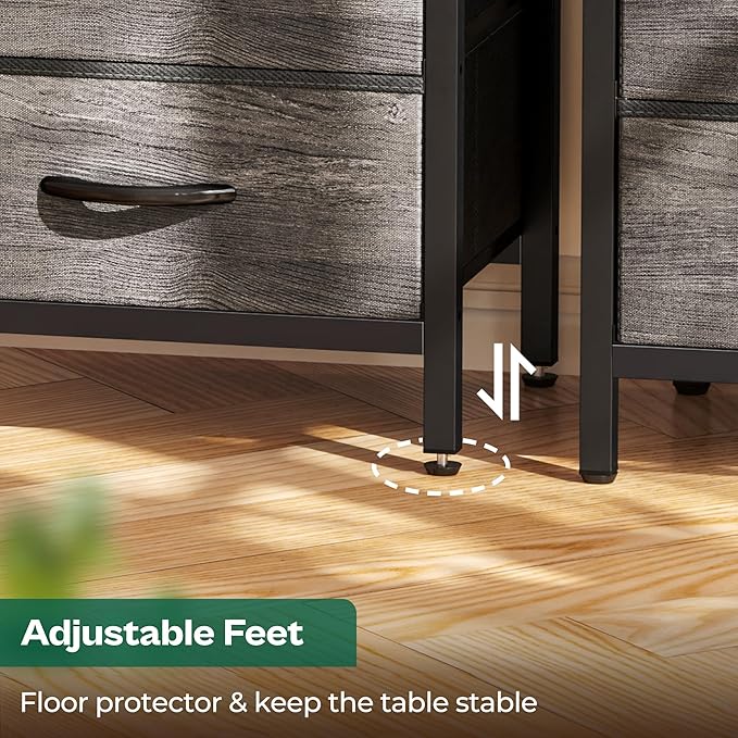 - 【Solid Structure】Crafted with P2 particle board, reinforced by a robust powder-coated steel frame, 2 durable non-woven fabric drawers, and balanced by 4 adjustable feet, this side tables living room will serve a long time