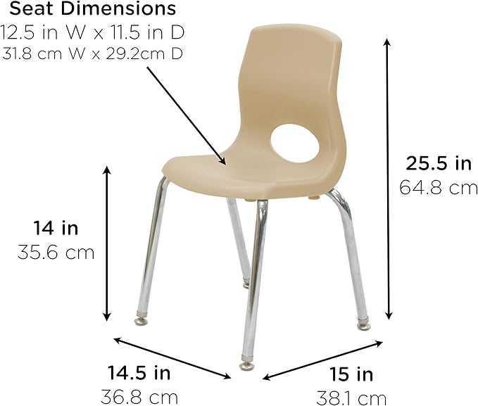Children’s Factory MyPosture Plus 14" Chair, Tan with Chrome Legs, 2 Pack, Stackable Ergonomic Seating Solution for Classrooms and Homeschools