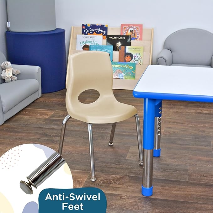 - NO MORE WOBBLE: The kids classroom chair includes 4 nylon, self-adjusting swivel floor glides that twist to slightly lengthen or shorten each leg, independent of the others, to eliminate wobble.