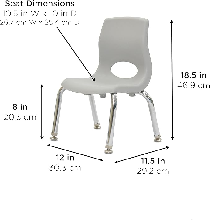 Children’s Factory MyPosture Plus 8" Chair, Gray with Chrome Legs, 2 Pack, Stackable Ergonomic Seating Solution for Classrooms and Homeschools