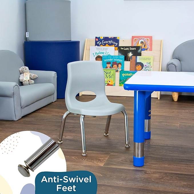 - NO MORE WOBBLE: The kids classroom chair includes 4 nylon, self-adjusting swivel floor glides that twist to slightly lengthen or shorten each leg, independent of the others, to eliminate wobble.