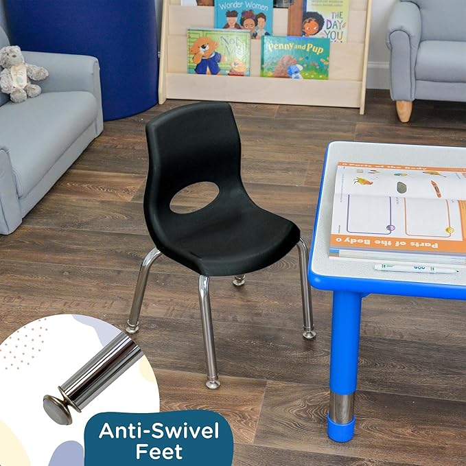 - NO MORE WOBBLE: The kids classroom chair includes 4 nylon, self-adjusting swivel floor glides that twist to slightly lengthen or shorten each leg, independent of the others, to eliminate wobble.