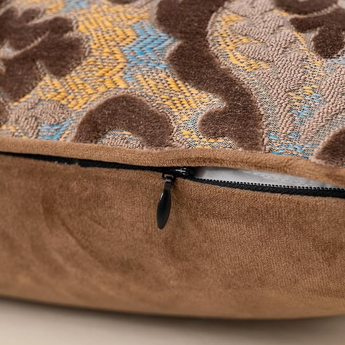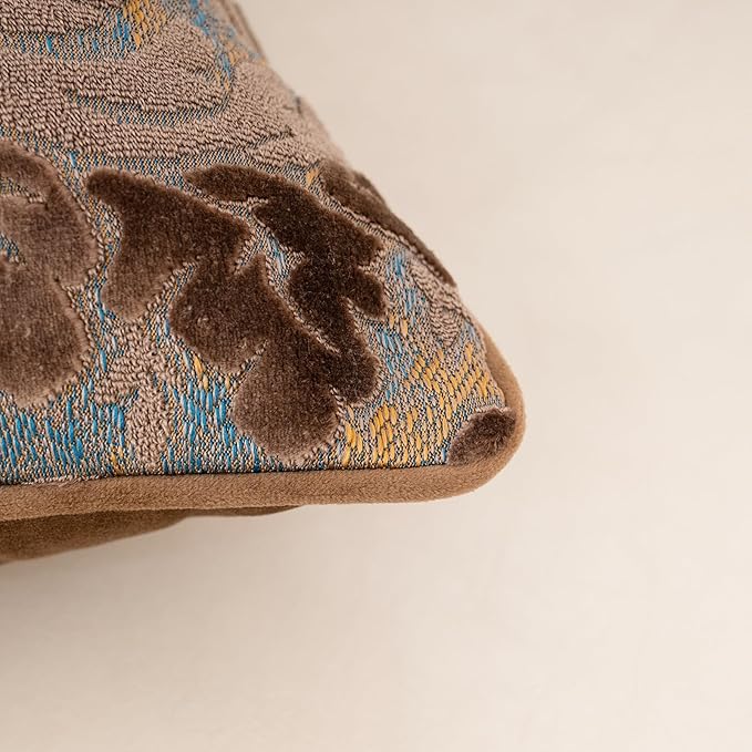 Alerfa Boho Brown Floral Throw Pillow Cover 20x20 Inch Cut Velvet Sqaure Luxury Embroidered Decorative Pillow Cover for Couch Living Room Bedroom