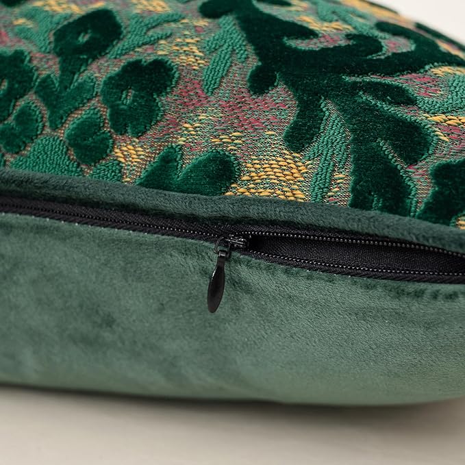 Alerfa Boho Green Floral Throw Pillow Cover 18x18 Inch Cut Velvet Sqaure Luxury Embroidered Decorative Pillow Cover for Couch Living Room Bedroom