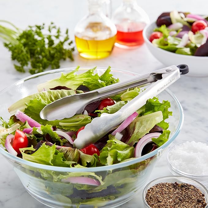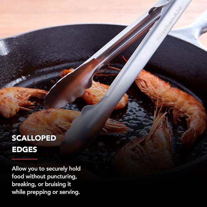 KitchenAid Set of 2 Stainless Steel Tongs with Scalloped Edges Easy Lock Dishwasher Safe Durable and Versatile Silver 7 Inch