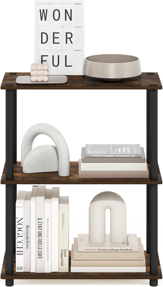 Furinno Turn-N-Tube 3-Tier Compact Multipurpose Shelf Display Rack, Amber Pine/Black