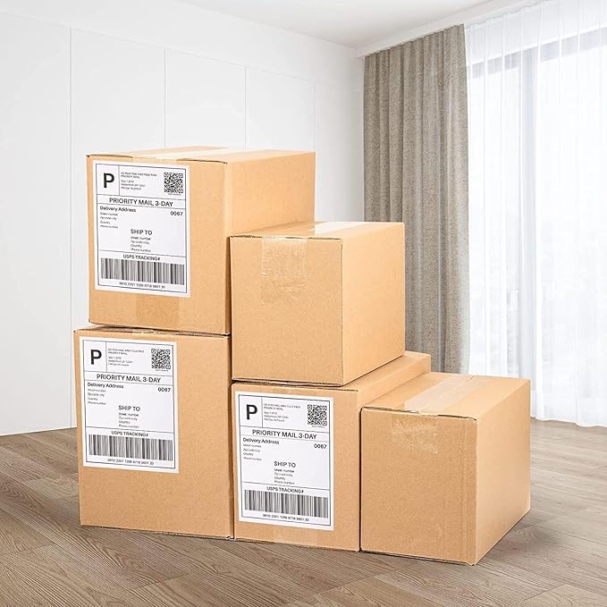- Self Adhesive shipping address mailing labels. Just peel and stick! Sticks great on cardboard, plastic, paper and almost any flat surface.