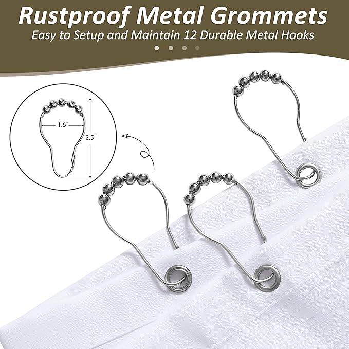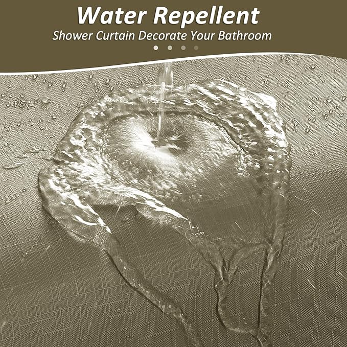 Grayish Brown Shower Curtains for Bathroom, Ombre Textured Fabric Shower Curtain Set, Hotel Spa Luxury with 12 Hooks, Decorative Bathroom Curtain 72 x 72
