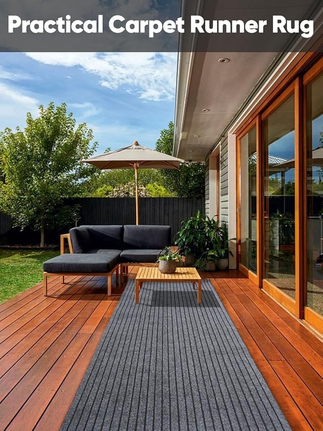 - 【Hight Quality Waterproof Carpet Runner】 Socomf carpet runners backed quality-crafted of 450 GSM surface and 480GSM TPE rubber coating back, anti-slip and low-profile pile (0.2 inch thickness) of this aisle rugs is comfortable under your feet without adding any bulks or snagging under doors, soft touching and durable for long lasting, a low-maintenance washable runner rugs, and the breathable material will not scratch your floor, a well-made floor mats, suitable for indoor/outdoor of entryway, hallway, garage, balcony, kitchen, deck and porch, both pets and children will love it