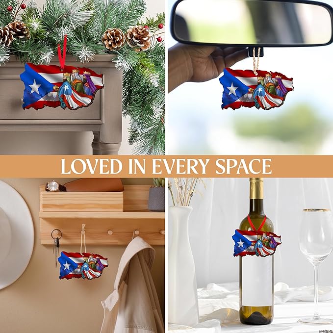 - PUERTO RICAN CHRISTMAS ORNAMENTS - Celebrate your heritage with these festive Christmas tree ornaments that go beyond mere decoration. Ideal for Puerto Rico home decor, car accessories, christmas gifts for women, christmas gifts for husband, and beautiful Puerto Rican new home gift ideas, each piece captures the vibrant spirit and beauty of Puerto Rico.