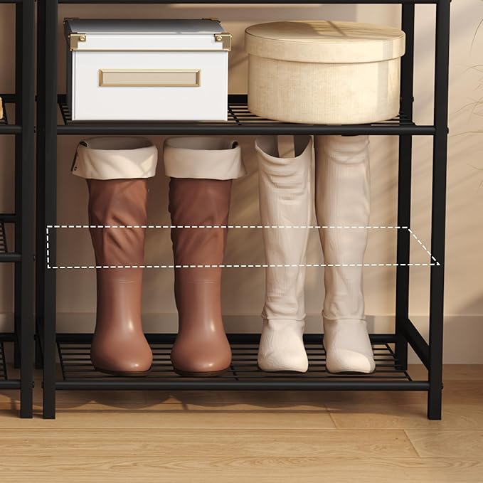 - Versatile and Compact Shoe Rack: An attractive shoe rack to provide storage space for shoes, boots, high heels, and sneakers to organize the entryway, front door, hallway, and bedroom.