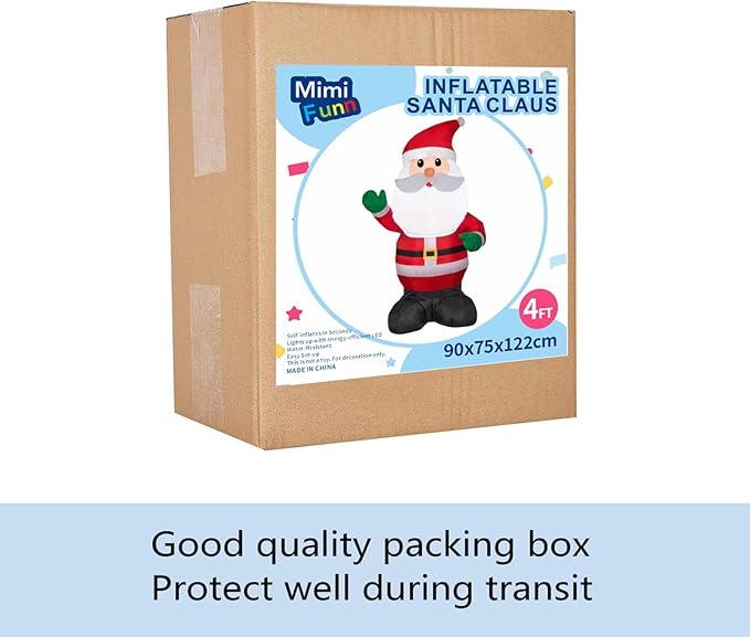Mimi Funn 4FT Christmas Inflatable Santa Claus Raises his Hand, Blow up Lighted Santa Claus Yard Decoration Suitable for Christmas Indoor Outdoor Xmas Yard Party Holiday Garden Decor