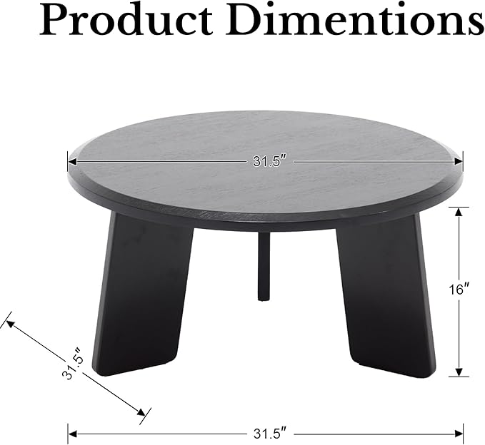 Modern Wood Coffee Table Small Desk Farmhouse Round Coffee Table Floor Table Couch Table Easy Assembly for Living Room/Office/Reception/Sofa Couch End, Black
