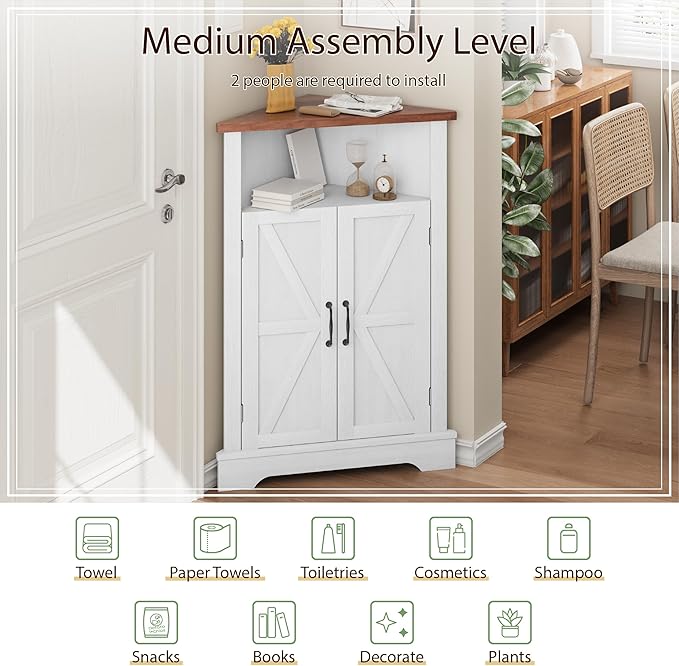 - Farmhouse Style: The corner storage cabinet is designed with barn doors with rustic metal parts, full of rustic flavor, adding decorative charm to your home.