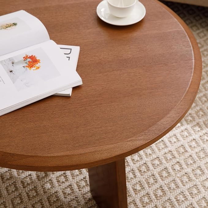 Modern Wood Coffee Table Small Desk Farmhouse Round Coffee Table Floor Table Couch Table Easy Assembly for Living Room/Office/Reception/Sofa Couch End, Walnut