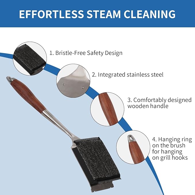 - 【Ultra-Safe Bristle-Free Design】 No dangerous wire bristles! Our steam-powered grill brush eliminates the risk of metal shedding, ensuring safer cleaning for your family. Perfect for porcelain, ceramic, cast iron, and stainless steel grates.
