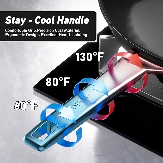 - PROFESSIONAL HEAT DISTRIBUTION: Precision-engineered with bottom, 4mm-thick smooth stainless-steel bottom & skillet design with thick mouth and thin body allow for more even heat distribution, professional-grade design disperses metal thickness consistently across the entire nonstick cooking skillet,facilitating swift and even cooking of your dishes