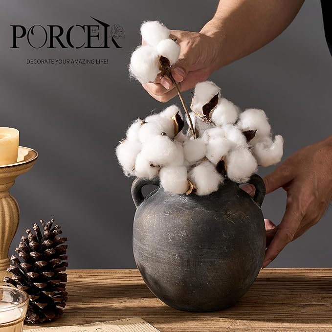 - [PORCER Farmhouse Vase] The idea of the design is inspired by American Flower Arrangement, simple farmhouse vintage design can be casually matched with any style to meet all your decorating needs. Let it be the centerpiece of your living room, bedroom, dining room, coffee table, hallway, bookshelf, fireplace, office! Mixing and matching as you like.