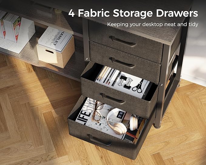 - 【Super Large Storage Space】 The AODK L-shaped desk provides 1 monitor stand, 1 UPC stand, 2 open shelfs and 4 Tier of drawers, which gives you super plenty of under-desk storage space to help you store your books, work files and small office stuffs, make your work and study more efficient. The height adjustable ergonomic monitor stand engineered to reduce back and neck stress by promoting a better sitting posture.