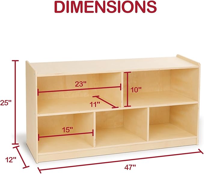 Monläurd® 100% Birch Cabinet, 5-Section Montessori Wooden Bookshelf & Storage Organizer, Toy Storage Cabinet for Kids, Daycare Furniture, Toddler Book Shelf for Playroom, Classroom and Nursery