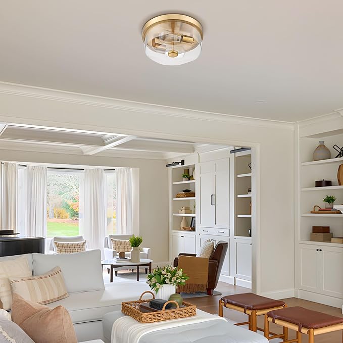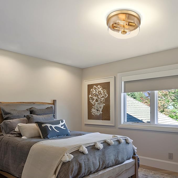 - 【Flush mount Design& Vintage Style】 This ceiling light is featuring a unique glass shade and a classic brushed gold metal base. Greatly create a farmhouse and retro look in your home. , which offers added style and beauty for your living space, making vintage and stunning embellishments for your home decoration.
