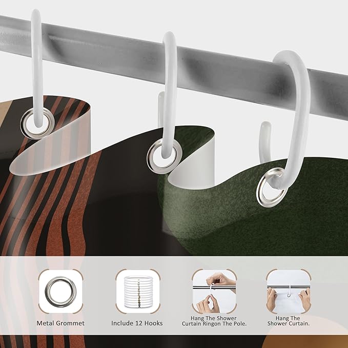 - 【Premium Materials】This dark green brown boho shower curtain is made of 100% environment-friendly polyester fabric, water resistant, quickly dry, odorless, safety and fadeless.