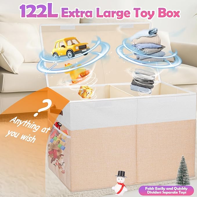 - Detachable Divider - The toy storage organizer has a removable divider, allowing for either 2 separate storage areas or one large storage space, which is great for organizing different items. Kids toy chest comes with a detachable cover to keep dust at bay, or easily take it off for quick access to your belongings