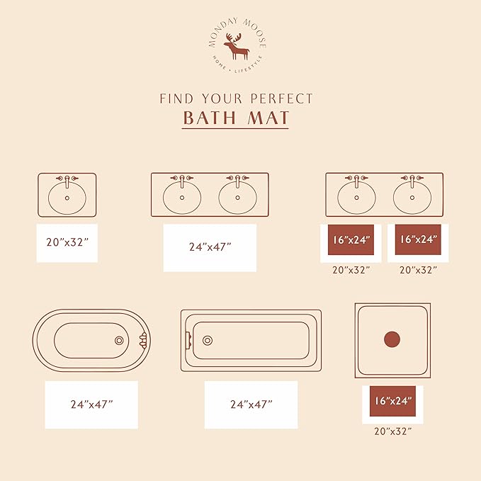 MONDAY MOOSE Bath Mat with Scalloped Wavy Ripple Design, Microfiber Absorbent Non Slip Tufted Rug for Floor, Shower or Kitchen (24x47 inch, Blush)