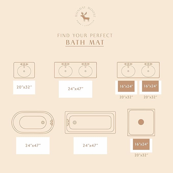 MONDAY MOOSE Bath Mat with Scalloped Wavy Ripple Design, Microfiber Absorbent Non Slip Tufted Rug for Floor, Shower or Kitchen (24x47 inch, Beige)