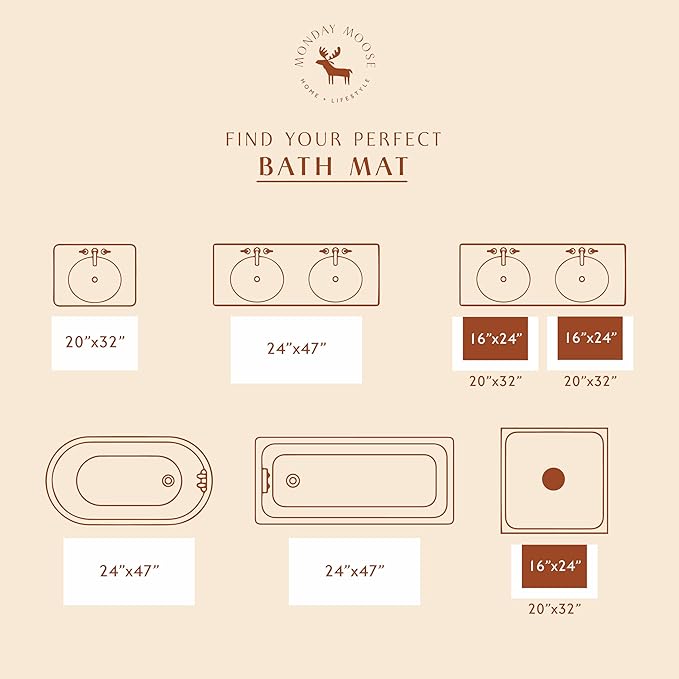 MONDAY MOOSE Bath Mat with Scalloped Wavy Ripple Design, Microfiber Absorbent Non Slip Tufted Rug for Floor, Shower or Kitchen (24x47 inch, Terracotta)