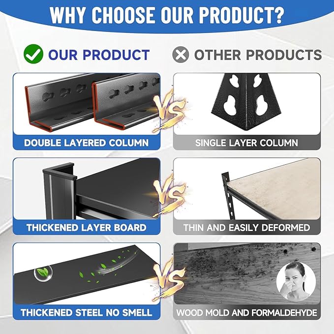 - 【Essential for Every Home - Heavy-Duty Storage Rack】This rack boasts a total weight capacity of 3500 lbs. Made entirely of steel, our rack is far more durable and sturdy compared to ordinary wooden, plastic, or wire storage racks. If you're looking for a storage solution that lasts up to 15 years, this is your best choice.