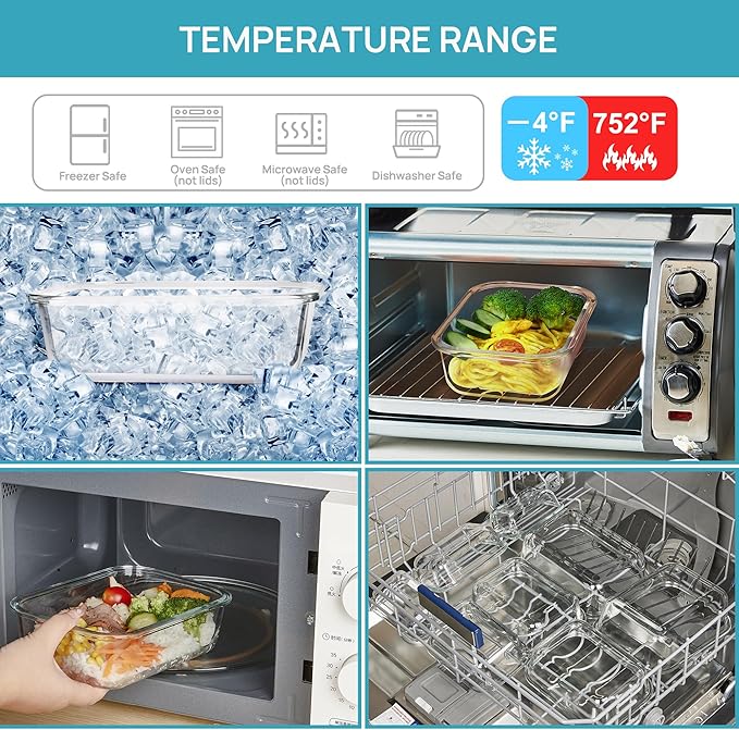 - 【Glass Containers Safe for Oven/ Microwave/ Freezer/ Dishwasher】Vtopmart Meal Prep Container is able to withstand -4℉ to 752℉ (-20℃ – 400℃), the glass containers is made of high-quality borosilicate glass to hold up very well from refrigerator direct to microwave.