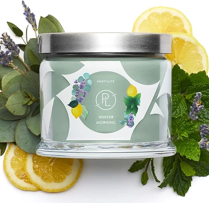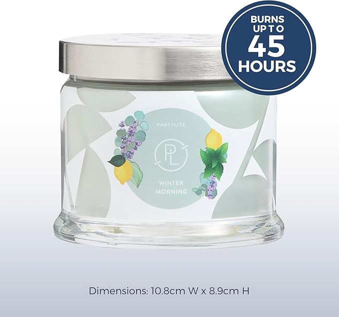 PartyLite 3-Wick Jar Candle, Highly Fragranced Clean Burning Glass Candle, 25-45 Hours Burn Time (Winter Morning)